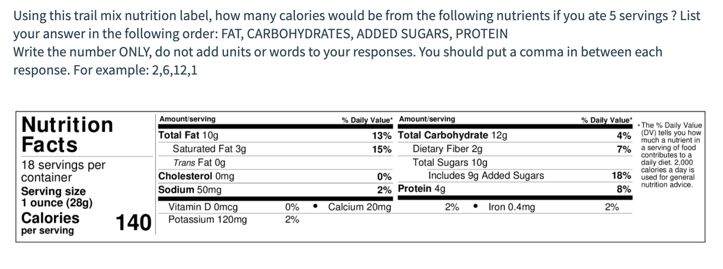 Trail Mix Nutrition Facts Eat This Much from images.eatthismuch.com Algebra properties of real numbers multiplication of rational numbers. Nutritional information for a variety of types and serving sizes of trail mix is shown below. The calories in trail mix may send you snacking elsewhere, but calories aside, it can still be pretty good for you. Calories per serving of tasty trail mix. Snacks, trail mix, regular, with chocolate chips, salted nuts and seeds. Discover here the amounts present in each of the listed vitamins and useful facts about them. Note that energy source part — trail mix is high in calories by design, because people on the move need lots of calories. * the percent daily values are based on a 2,000 calorie diet, so your values may change depending on your calorie needs.
